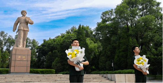 在雷锋纪念馆凭吊区,伴随着《义勇军进行曲》响起,全体师生怀着崇敬之情、庄严肃立,举行庄重的敬献花束仪式、向雷锋塑像三鞠躬,向这位伟大的共产主义战士致以最崇高的敬意,表达了对雷锋同志的追思与敬仰、对伟大祖国的热爱。