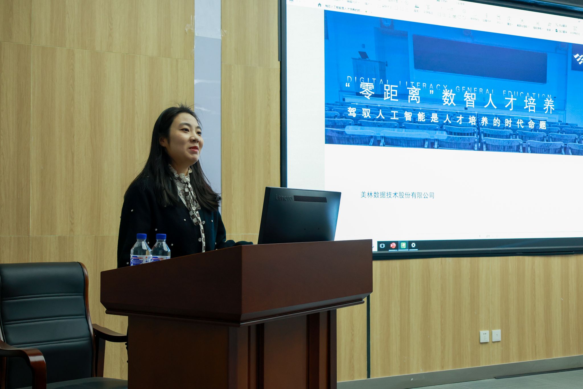 当日,系党总支书记王喜华、系主任贾睿带领系内骨干教师,与沈阳辉山经济技术开发区、宇树科技、美林大数据、中兴软件、润开鸿数字科技等知名企事业单位的技术专家,以及辽宁现代服务职业技术学院、沈阳职业技术学院、辽宁生态工程职业学院等兄弟院校的教学负责人进行了热烈且务实的讨论。“就业数据复盘”环节,各专业骨干教师及兄弟院校教学负责人剖析教育教学痛点,提出个别课程与技术脱节、职业素养培养不足的问题。“企业需求解读”环节,多个企业展示了2025年岗位技能图谱和人才缺口,建议增加缺口方向项目实训,助力学生积累经验完成就业。“校企协同研讨”中,校企针对企业建立企业导师驻校机制、优化实习考核标准、共建“智能计算实习基地”等想法进行了可行性论证及大学城专业圈的初步构想,打破传统界限,为实践和就业发展提供了新思路。沈阳辉山经济技术开发区科技局副局长臧宝东表示沈北的高职院校可以依托大学城及沈北地区的主要企业,共同构建一个产教融合的大型平台。政府相关部门则提供基层服务支持,实现资源共享,以促进各方便捷合作。