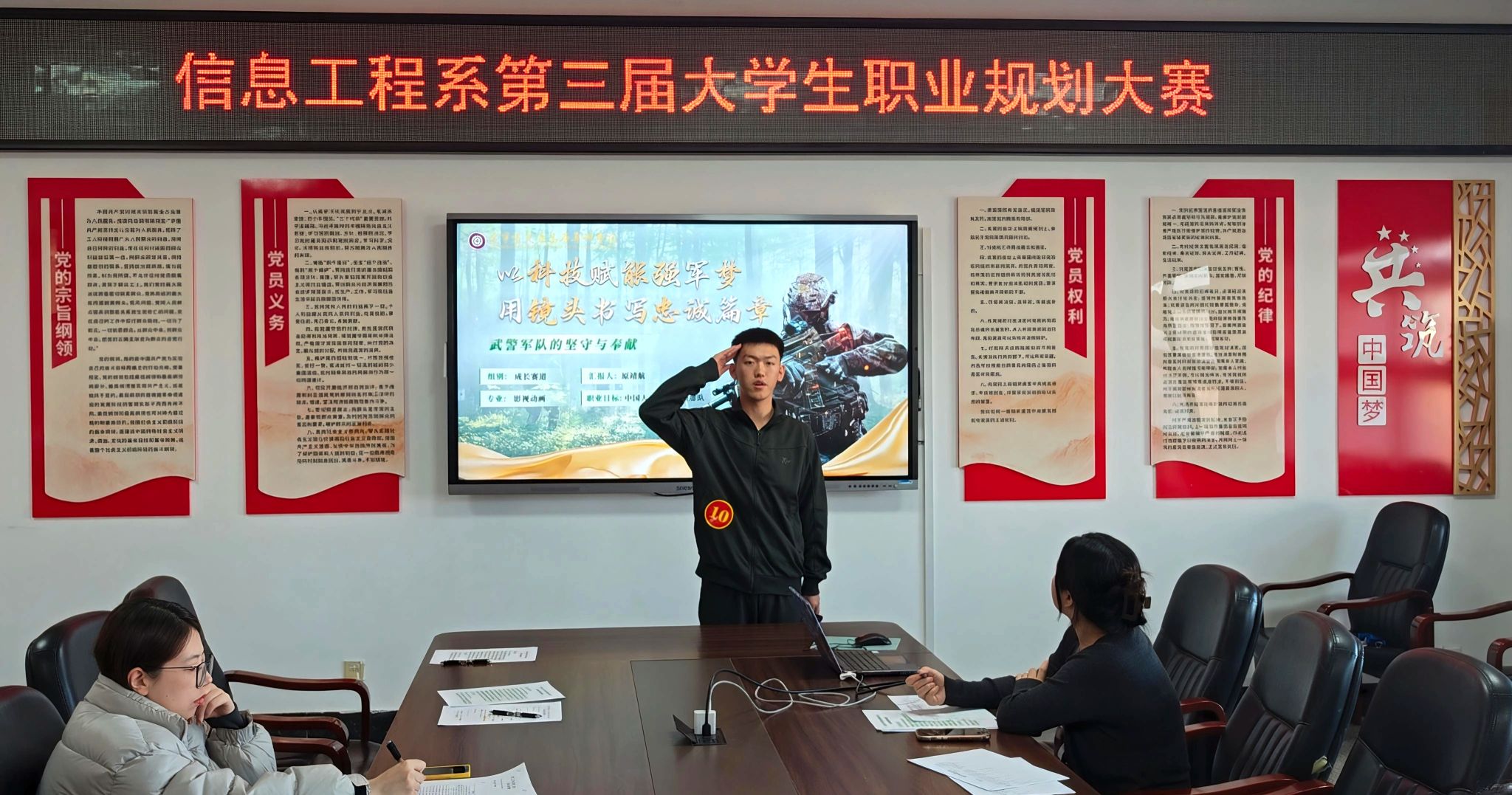 比赛环节分为就业赛道与成长赛道两个组别依次进行展示。参赛选手们精神饱满,准备充分,结合精心制作的PPT,从职业缘起、职业目标定位与认知、行动实践成果、动态评估调整等多个维度,清晰而富有感染力地阐述了自己的职业规划蓝图。他们的展示充满激情、逻辑严谨,不仅展现了信息工程系学子扎实的专业基础和良好的综合素质,更体现了他们对未来发展的深入思考和对社会责任的积极担当。