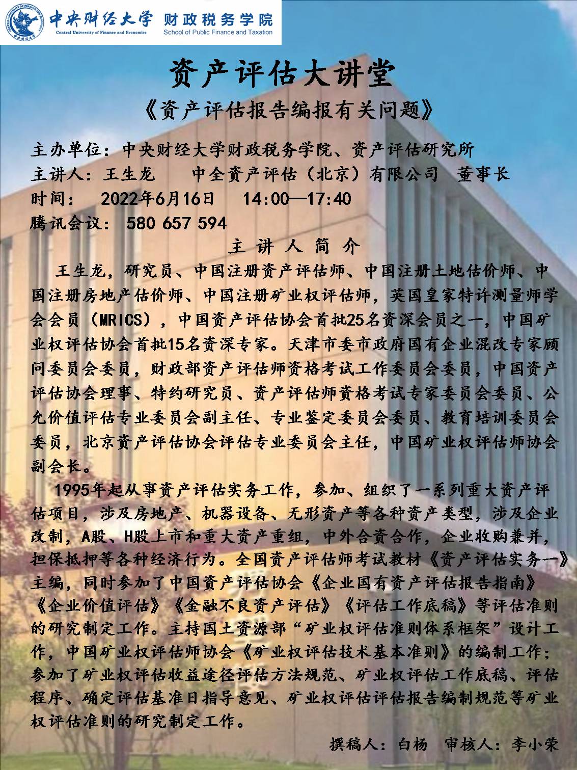 财政税务学院举办2022年“资产评估大讲堂”系列讲座
