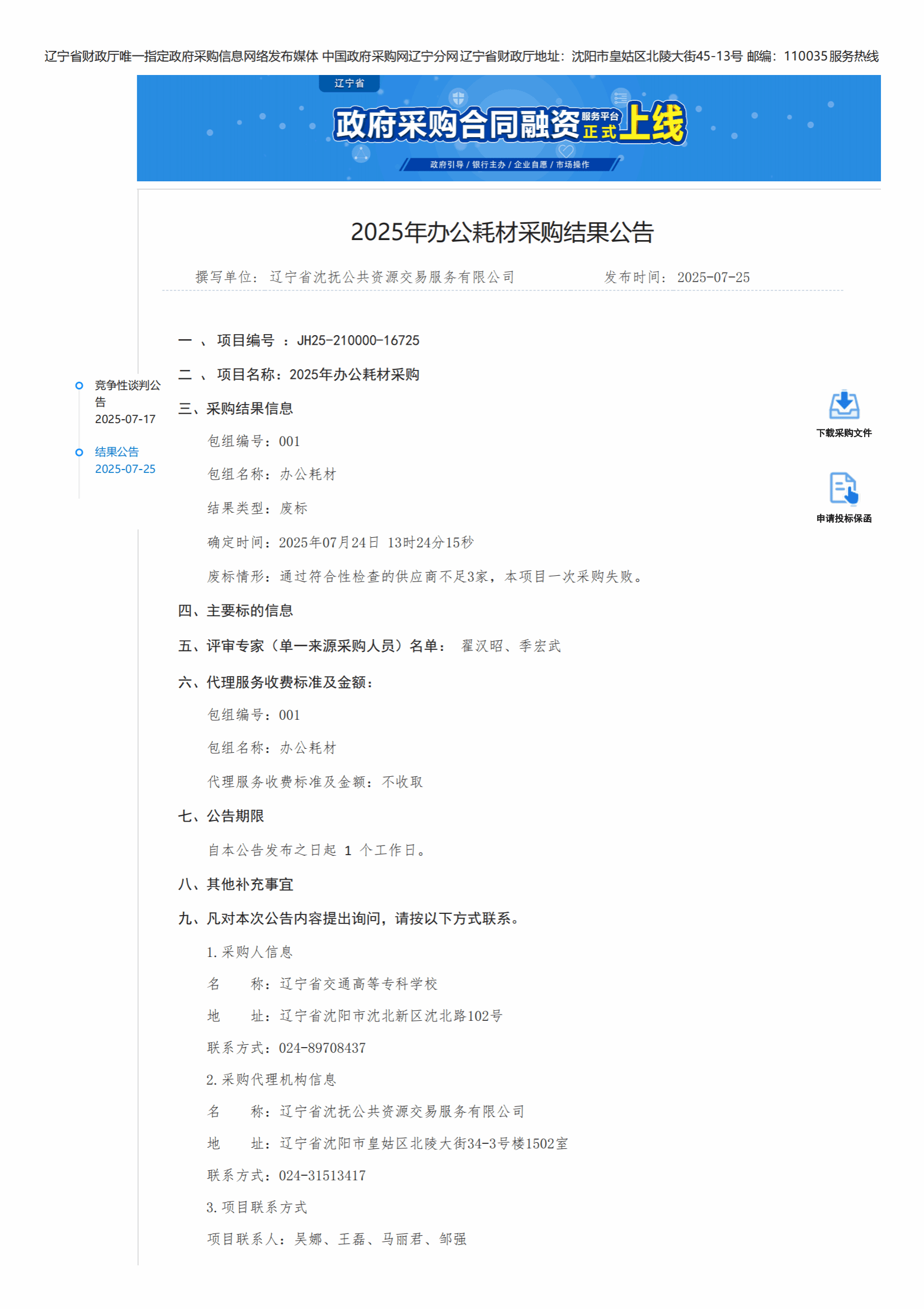 辽宁省交通高等专科学校学生公寓空调系统配套电力增容工程结果公告