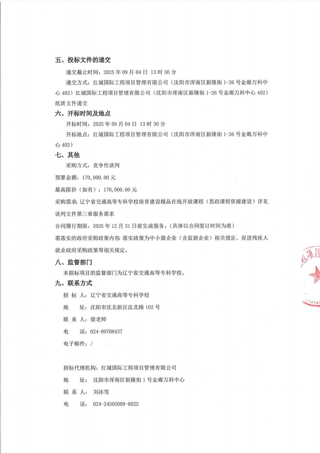 培育建设精品在线开放课程(思政课程资源建设)项目采购公告(LNCC2025092)