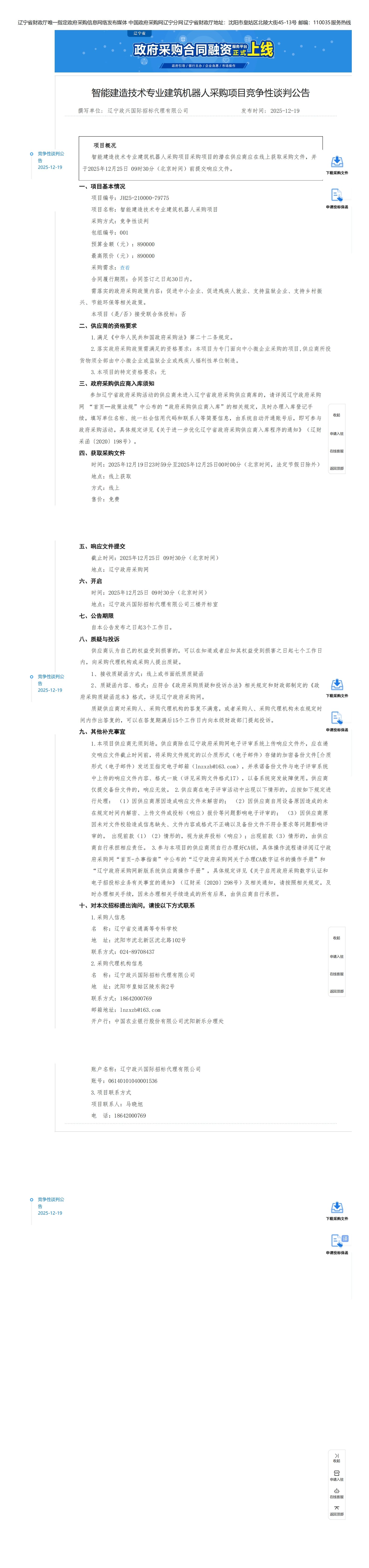 智能建造技术专业建筑机器人采购项目竞争性谈判公告