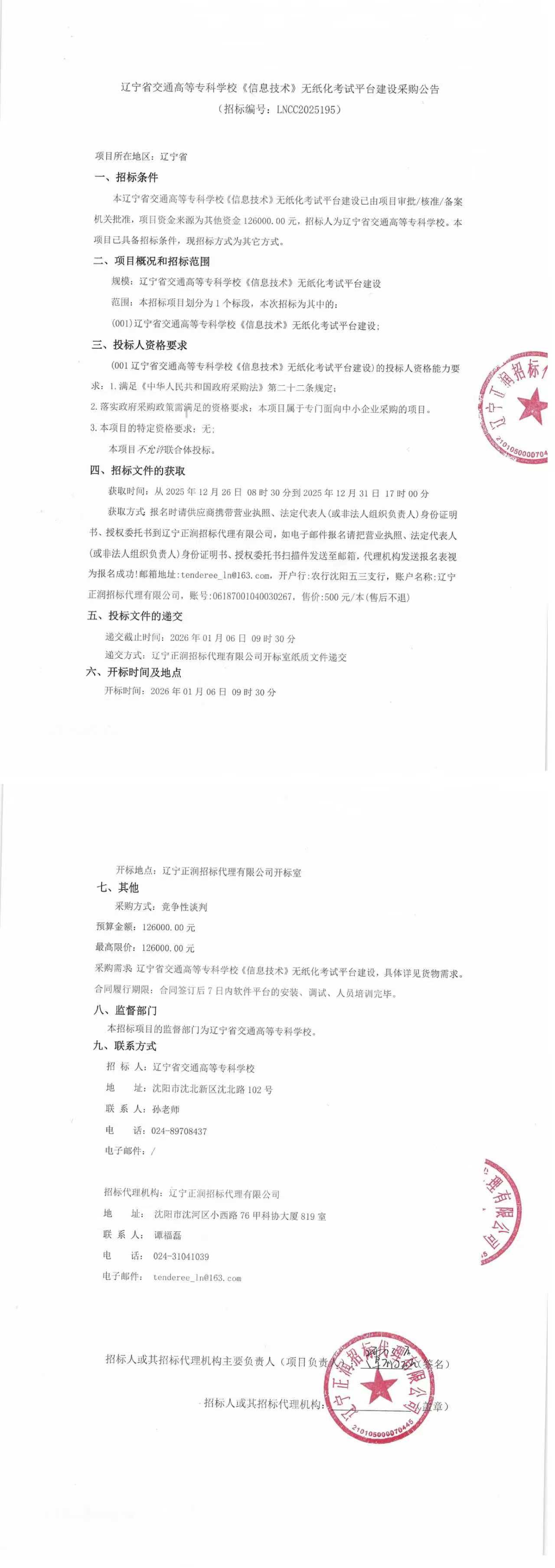 《信息技术》无纸化考试平台建设项目采购公告(LNCC2025195)