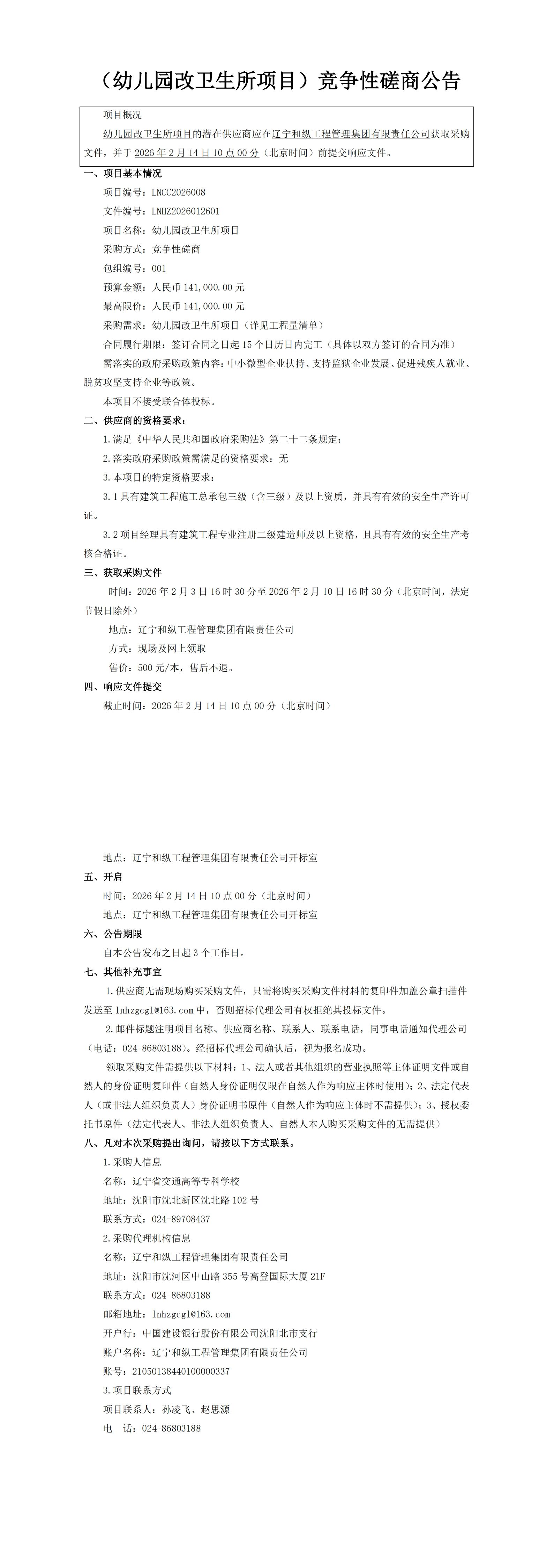 幼儿园改卫生所项目竞争性磋商公告(LNCC2026008)