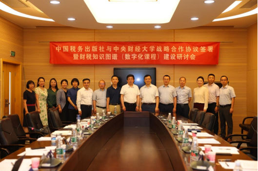 2023年7月4日,在我校学术会堂603隆重举行了中央财经大学与中国税务出版社战略合作协议签署暨财税知识图谱(数字化课程)建设研讨会。会议由我校财政税务学院院长樊勇教授主持,与会人员有中国税务出版社社长朱承斌、副社长马连庆、副总编辑王静波、主任刘冬珂、主任庞博、副主任王飞,我校校长马海涛教授、研究生院院长白彦锋教授、教务处副处长聂建峰,以及财政税务学院副院长何杨教授、副院长刘金科副教授,教师代表李贞教授、姜爱华教授,教学办公室主任庞淑芬等。