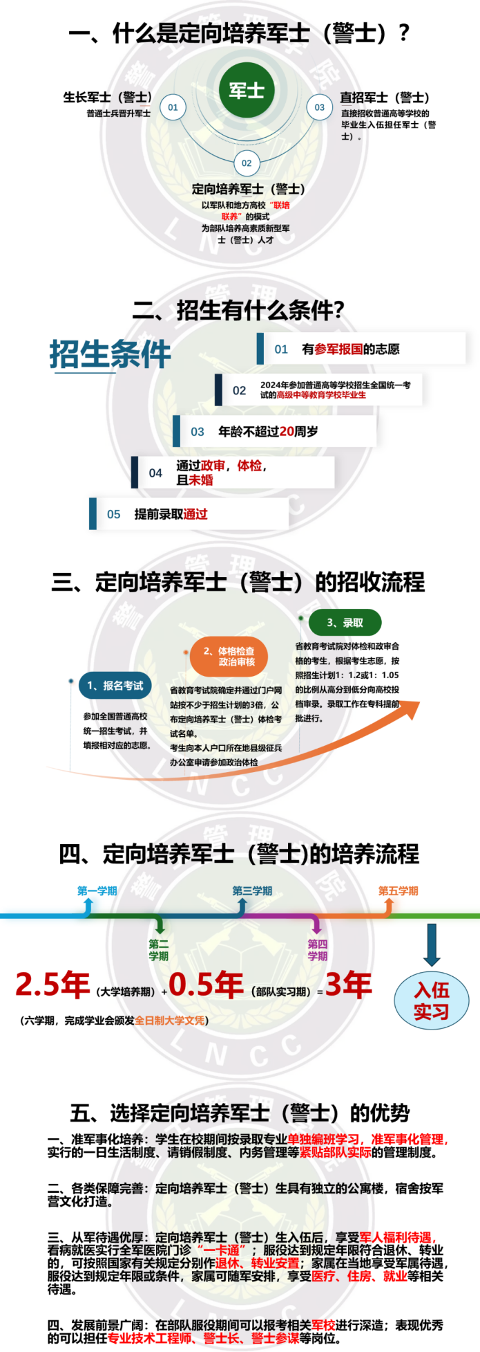 本专业面向武警部队、培养具有道路与桥梁工程勘测、施工、维护抢通、军事等知识和技能,能从事公路、桥梁和隧道工程测量、施工、检测及快速抢通等岗位工作,具备较高的专业技术能力和军事素养的复合型人才。