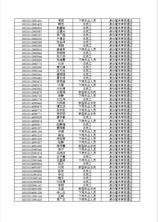 根据辽宁省招生考试之窗发布的公示名单以及相关文件要求,现将考生身份暂时未审核通过名单进行公布,以下考生需在规定时间内(2019年11月28日前)联系相关部门进行身份认定,同时向我校提交所需材料备 查并签订考试承诺书,若考生未按相关要求予以配合,那么将影响考生后续的录取进程,产生的后果由考生本人承担,特此说明!